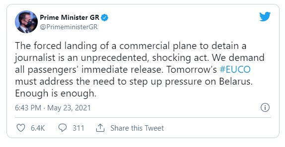 Ο Μητσοτάκης πάντως ήταν σκληρός απέναντι στη Λευκορωσία. Είπε «enough is enough» (φτάνει πια) φράση που θα έμπαινε στο πάνθεον των φράσεων μεγάλων ανδρών αν δεν την είχαν πει πρώτες η Donna Summer και η Barbara Streisand.