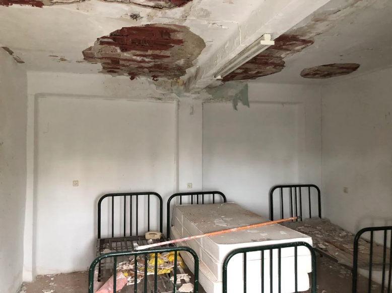 Η υγρασία καταστρέφει τις ψευδοροφές και πέφτουν στα κεφάλια ασθενών και προσωπικού. Όπου πέφτουν νερά καταστρέφουν και τα πατώματα. Κουβάδες σε πολλά σημεία των νοσοκομείων σε διαδρόμους, εντός των θαλάμων ασθενών, τοποθετούνται για να πέφτουν τα νερά από τα ταβάνια. Παράθυρα που δεν κλείνουν στεγανά και μπάζουν νερά με τη βροχή.