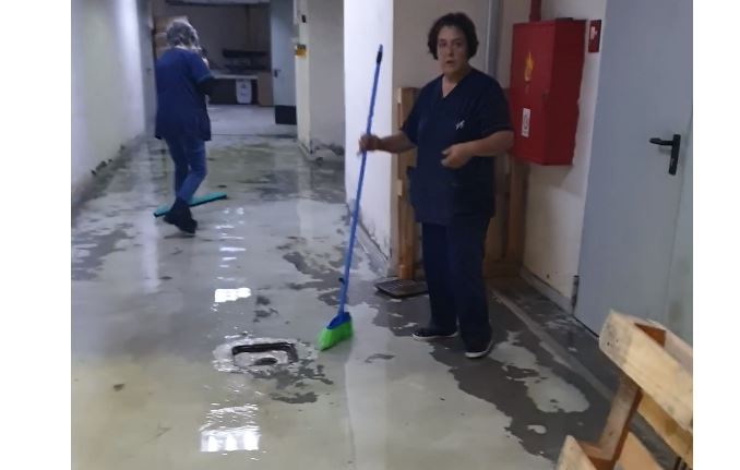Όλο το βράδυ και το πρωί μαζί με την φροντίδα στους ασθενείς μάζευαν τα νερά από τους χώρους του νοσοκομείου.