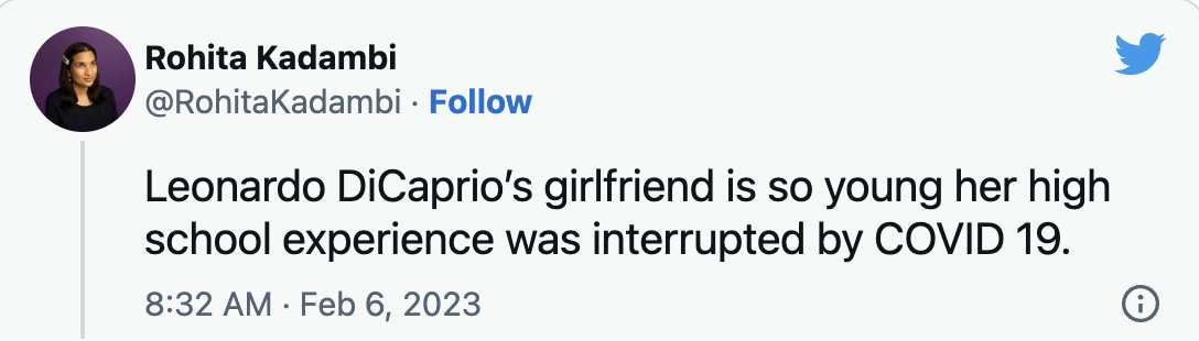 Ένα πρόσφατο τρανταχτό παράδειγμα είναι η περίπτωση του Leonardo DiCaprio, ο οποίος, όντας πλέον 48 ετών, δεν είχε ποτέ κάποια φιλενάδα (είπα φιλενάδα;) πάνω από 25 χρονών, ενώ πλέον φέρεται να είναι ζευγάρι με την 19χρονη Edel Polani. Τα τελευταία χρόνια, ο DiCaprio έχει γίνει συχνά-πυκνά στόχος επιθέσεων με φεμινιστικό και μη πρόσημο, από σοβαρά και ασόβαρα μέσα, και φυσικά από μια χιονοστιβάδα χρηστών στα social media. Το έγκλημα του DiCaprio δεν είναι ότι οι παρτενέρ του είναι ανήλικες (δεν είναι), ούτε ότι παραβίασε κάποια συμφωνία με οποιονδήποτε (δεν ήταν ποτέ αυτό το θέμα των κριτικών)· είναι ότι έχει, και υλοποιεί, μια διαρκή επιθυμία για πολύ νεαρότερες γυναίκες. Η επιθυμία του αυτή, διαβάζουμε, αντλεί από πατριαρχικά πρότυπα θέασης των γυναικών όπου η νεότητα και η ομορφιά είναι τα κατεξοχήν σημαντικά στοιχεία, και αναπαράγει επίσης πρότυπα αυτά λόγω της συνεχούς προβολής του DiCaprio. Η δε σχέση ενός τόσο μεγαλύτερου, διασημότερου, πλουσιότερου άντρα με μια μικρότερη γυναίκα είναι επί της αρχής ασύμμετρη, και οι ασύμμετρες σχέσεις είναι μια συνθήκη όπου περνάει καλά μόνο ο δυνατός πόλος.