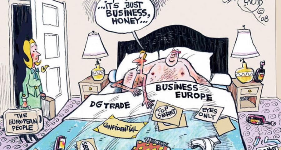 Από τον Ιανουάριο του 2012 οπότε και ξεκίνησε η διαπραγμάτευση της TTIP μέχρι τον Απρίλιο του 2013 σύμφωνα με τα στοιχεία που έχουν συλλεχθεί έχουν επισκεφτεί το Τμήμα Εμπορίου της Ευρωπαϊκής Επιτροπής 560 “ενδιαφερόμενοι”, από τους οποίους 520 ήταν από τον ιδιωτικό τομέα και μόλις 26 εκπροσωπούσαν οργανισμούς δημοσίου συμφέροντος.