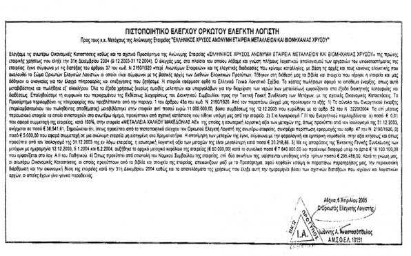Το Έγγραφο του Ορκωτού λογιστή για την Ελληνικός Χρυσός