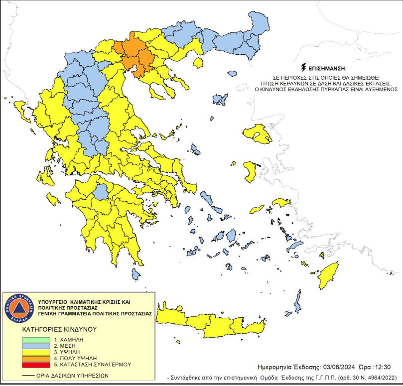 Η Γενική Γραμματεία Πολιτικής Προστασίας (civilprotection.gov.gr) του Υπουργείου Κλιματικής Κρίσης & Πολιτικής Προστασίας έχει ενημερώσει τις αρμόδιες υπηρεσιακά εμπλεκόμενες κρατικές υπηρεσίες, καθώς και τις Περιφέρειες και τους Δήμους των ανωτέρω περιοχών, ώστε να βρίσκονται σε αυξημένη ετοιμότητα πολιτικής προστασίας προκειμένου να αντιμετωπίσουν άμεσα τυχόν επεισόδια πυρκαγιών.