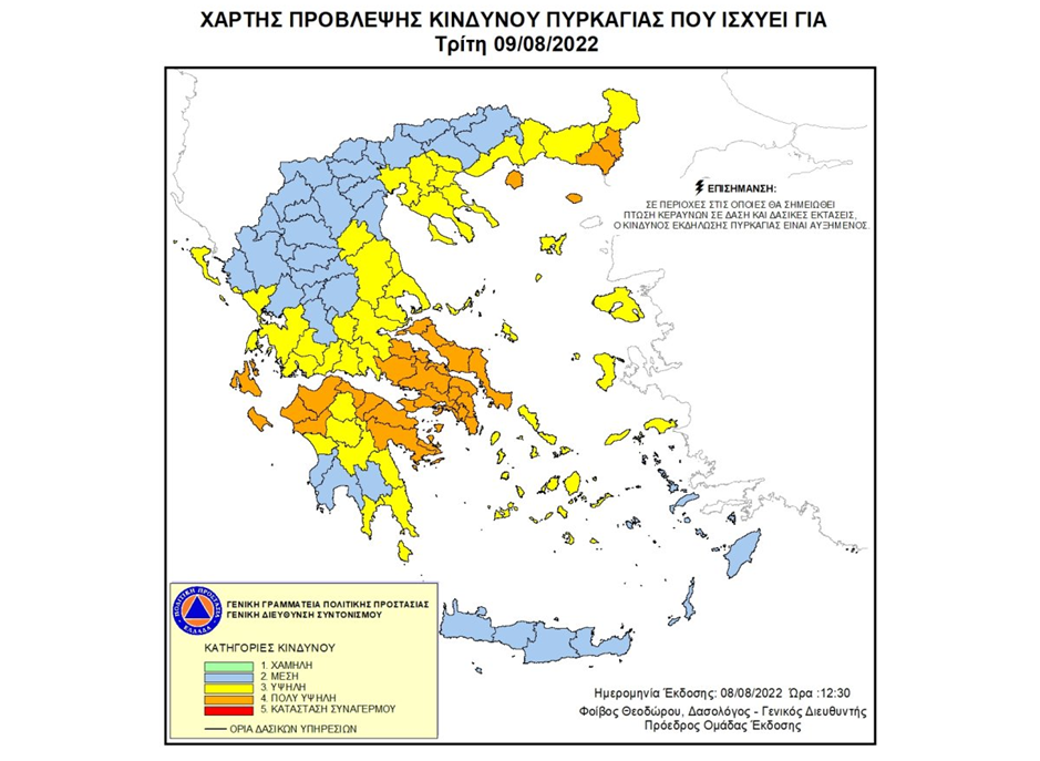 Επιπρόσθετα, το προσωπικό των Πυροσβεστικών Υπηρεσιών των ανωτέρω Περιφερειακών Ενοτήτων παραμένει σε μερική επιφυλακή, προκειμένου να αντιμετωπιστούν οι αυξημένες υπηρεσιακές απαιτήσεις, που πιθανόν να προκύψουν λόγω πολύ υψηλού κινδύνου πυρκαγιάς (κατηγορία κίνδυνου 4).