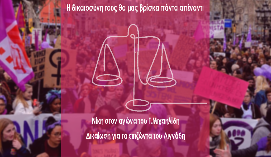 Παράλληλη πορεία θα πραγματοποιηθεί από το ίδιο μέρος και ίδια ώρα για δικαίωση των θυμάτων του βιαστή Δημήτρη Λιγνάδη. Η Φεμινιστική Συλλογικότητα Sabbat αναφέρει: «Η δικαιοσύνη τους θα μας βρίσκει πάντα απέναντι. Ραντεβού αύριο 7μμ στην Πλατεία Συντάγματος. Σε μια κοινωνία που διαπερνάται από τη βία του κράτους, την πατριαρχίας, του ρατσισμού και του καπιταλισμού, δεν έχουμε καμία ψευδαίσθηση πως θα υπάρξει δικαιοσύνη μέσα από τις ίδιες δομές και τους ίδιους θεσμούς που παράγουν βία και πολλαπλές καταπιέσεις. Ο Δημήτρης Λιγνάδης κρίθηκε ένοχος για δύο βιασμούς ανηλίκων και αφέθηκε ελεύθερος να ζει στο σπίτι του μέχρι το εφετείο. Ο Γιάννης Μιχαηλίδης, ενώ βρίσκεται σε απεργία πείνας εδώ και 53 ημέρες παλεύοντας για το δικαιώμα του να αποφυλακιστεί, παραμένει ακόμη έγκλειστος, και έχει ήδη δεχθεί τρεις απορριπτικές απαντήσεις στο αίτημα για την απελευθέρωση του. Δεν περιμένουμε καμία δικαιοσύνη από το σύστημά τους. Η μόνη δικαίωση θα έρθει μέσα από τους αγώνες μας, μέσα απο εμάς τα ίδια. Ραντεβού στην αυριανή πορεία για την απελευθέρωση του Γιάννη Μιχαηλίδη, στις 7:00 στο Σύνταγμα. Απελευθέρωση και νίκη στον αγώνα του Γ.Μιχαηλίδη – Δικαιώση για τα επιζώντα του Λιγνάδη – Καμία Μόνη, κανένα Λιγότερο».