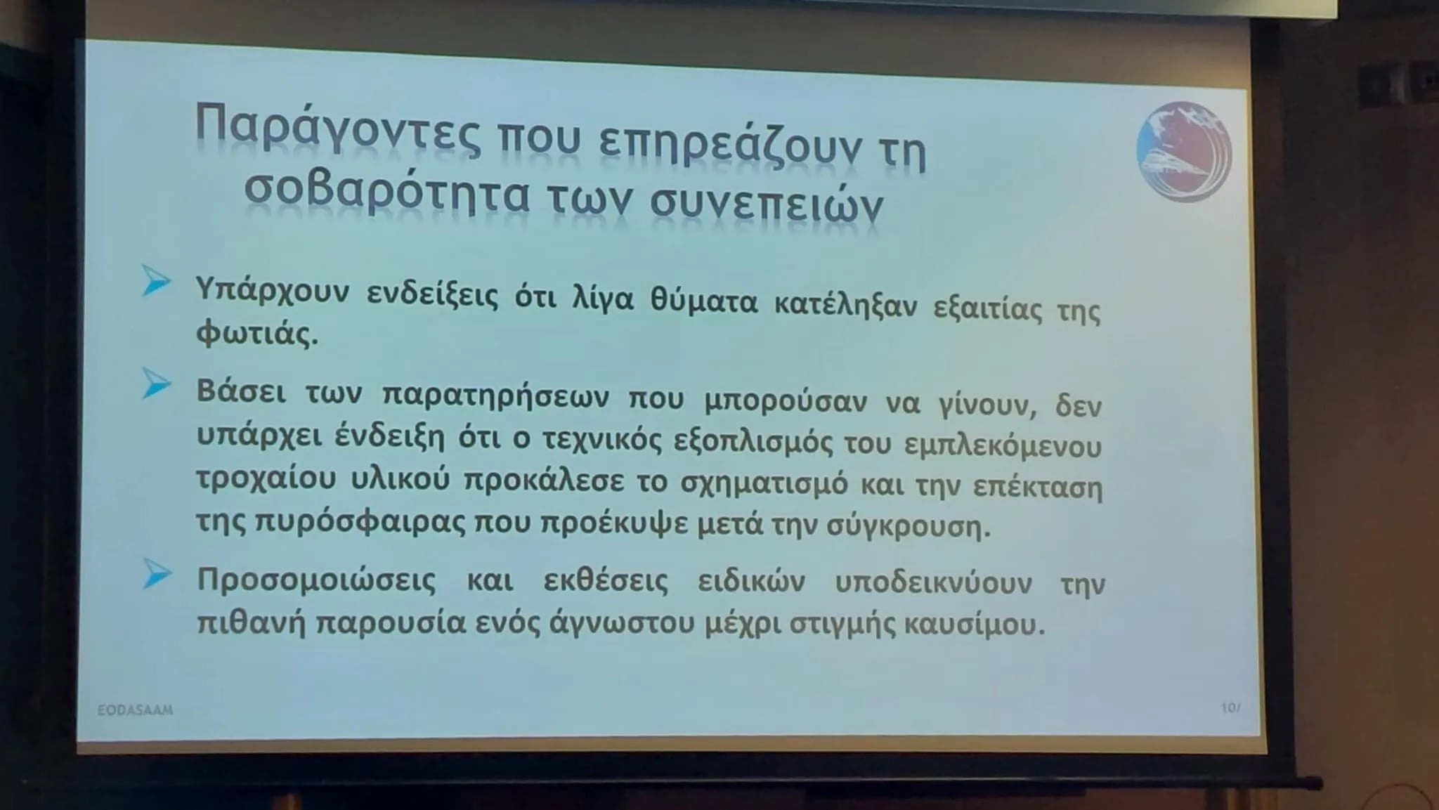 «Ο ΕΟΔΑΣΑΑΜ είναι ο εθνικός φορέας διερεύνησης αεροπορικών και σιδηροδρομικών ατυχημάτων, ένας φορέας ο οποίος έπρεπε να υπάρχει στη χώρα μας ήδη από το 2004, με την οδηγία 49, η οποία καθιέρωσε την υποχρέωση των κρατών μελών να δημιουργήσουν αυτόν τον φορέα. Παρόλα αυτά, στην Ελλάδα δυστυχώς αυτός ο φορέας δεν υπήρχε. Και ναι μεν με το νόμο 37/10/2008 συστήθηκε η Επιτροπή Διερεύνησης Σιδηροδρομικών Ατυχημάτων και η οποία όμως δεν λειτούργησε ποτέ. Αυτό είχε ως αποτέλεσμα όταν έγινε το τραγικό συμβάν δυστύχημα, το οποίο οφείλεται σε σειρά εγκληματικών λαθών και παραλείψεων επί σειρά ετών στην Ελλάδα, να μην υπάρχει λειτουργικός φορέας διερεύνησης ατυχημάτων. Διότι με τον νόμο 50/14 του 23, στα τέλη του Ιανουαρίου του 23, δηλαδή ένα μήνα πριν το τραγικό δυστύχημα, συστήθηκε ο ΕΟΔΑΣΑΑΜ, αλλά δεν είχε διοίκηση και δεν είχε διερευνητές».