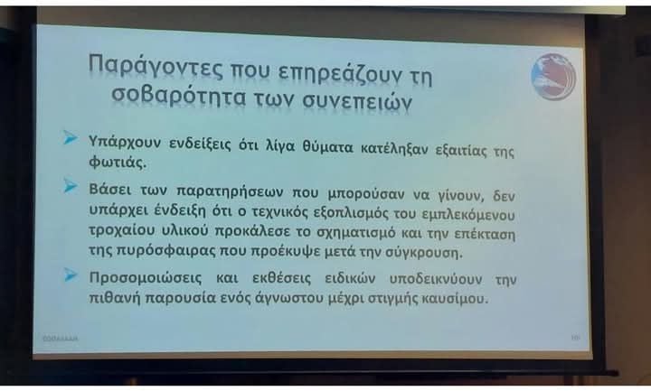 «Η πυρόσφαιρα ήταν πολύ μεγάλη. Καταλήξαμε ότι δεν υπήρξε ένδειξη ότι το σιδηροδρομικό υλικό προκάλεσε τη φωτιά. Πιθανή είναι η παρουσία αγνώστου καυσίμου», πρόσθεσε.