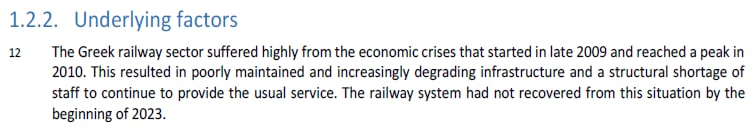 «Η σύμβαση 717 που δεν ολοκληρώθηκε, η απόφαση του κράτους να εγκαταλείψει τον σιδηρόδρομο, και τα μνημόνια που είχαν ως αποτέλεσμα την αποψίλωση του ΟΣΕ από προσωπικό συνεισέφεραν αποφασιστικά στο δυστύχημα»