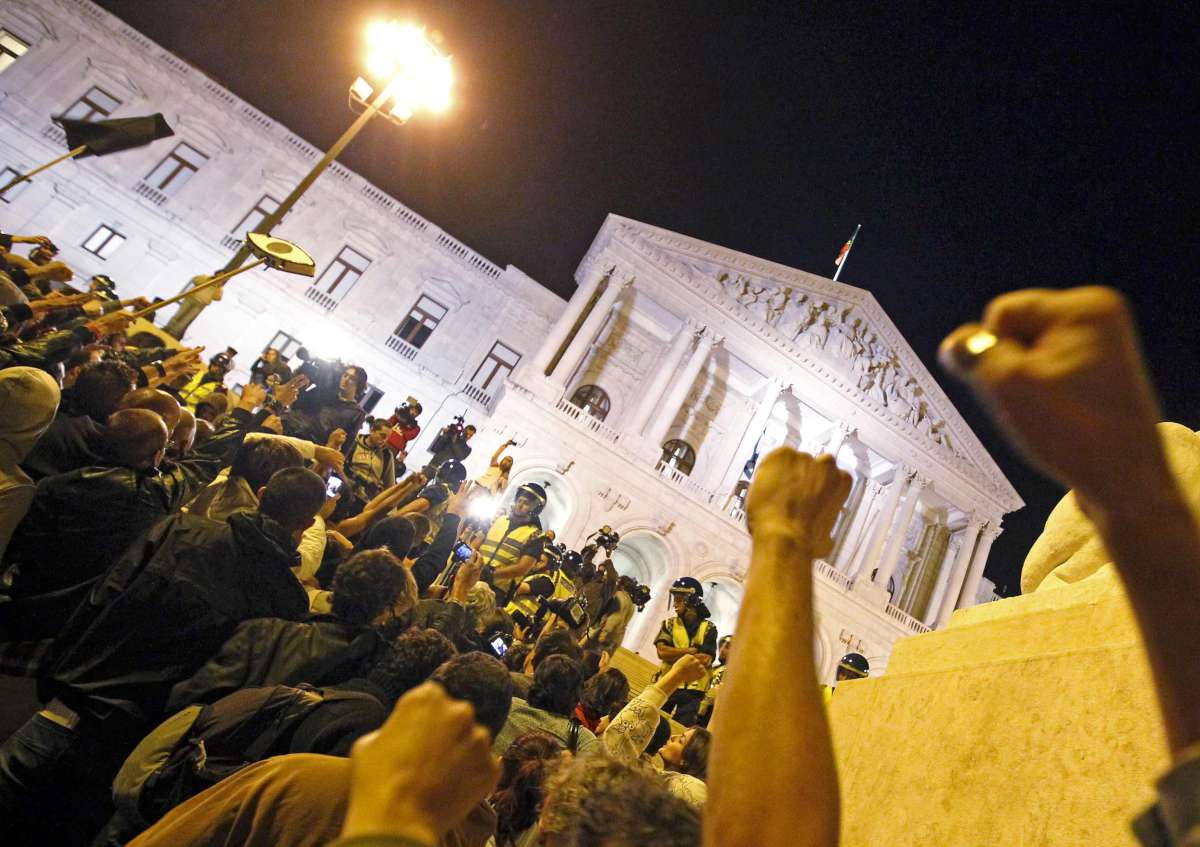 Περίπου 2.000 άνθρωποι συγκεντρώθηκαν έξω από το κοινοβούλιο στη Λισσαβόνα τη Δευτέρα για να διαμαρτυρηθούν και να απαιτήσουν η κυβέρνηση να παραιτηθεί. Προσπάθησαν να περικυκλώσουν τη βουλή και αρκετοί παρέμειναν στην ευρύτερη περιοχή ως αργά τη νύχτα συμπλεκόμενοι με αστυνομικούς.