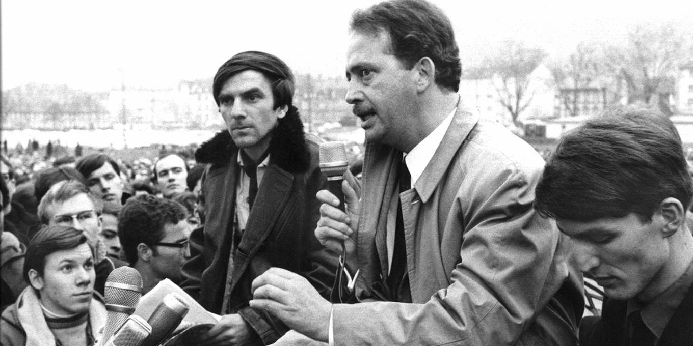Ας δούμε τη δημόσια αντιπαράθεση μεταξύ του Ραλφ Ντάρεντορφ , ενός μέλους του Ελεύθερου Δημοκρατικού κόμματος (FDP) με τον αριστερό φοιτητή Ρούντι Ντούτσκε (σ.τ.μ. ο βασικός εκπρόσωπος του φοιτητικού κινήματος στη Γερμανία τη δεκαετία του 1960) έξω από το συνέδριο του FDP στο Φράιμπουργκ.
