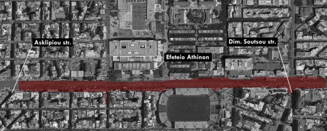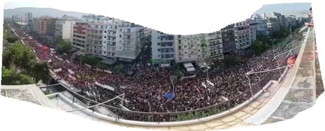 Τα μεγάφωνα της αντιφασιστικής συγκέντρωσης ανακοίνωναν πως ο συγκεντρωμένος κόσμος εκτείνεται από την Κηφισίας μέχρι την Ιπποκράτους. Χρησιμοποιώντας ένα από τα διαθέσιμα βίντεο στα social media φτιάξαμε ένα πανόραμα που μας βοηθάει να υπολογίσουμε το μέγεθος της συγκέντρωσης βάσει του εμβαδού που καταλαμβάνει η συγκέντρωση, όπως αυτή καταγράφεται, από τη γωνία Ασκληπιού και Λ.Αλεξάνδρας μέχρι και λίγο μετά την οδό Δημ. Σούτσου. Καταγράφουμε επίσης τον κόσμο που υπήρχε συγκεντρωμένος στο στενό της Λουκάρεως απέναντι από το Εφετείο.
