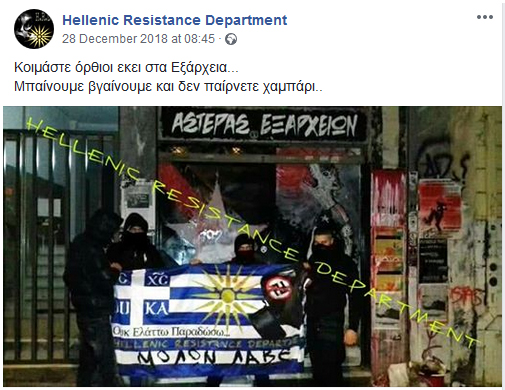 Σε άλλη εικόνα, δημοσιευμένη στις 28 Δεκεμβρίου 2018 εικονίζονται έξω από το χώρο που στεγάζει τον σύνδεσμο του Αστέρα Εξαρχείων στον πεζόδρομο της Τσαμαδού με σχόλιο: