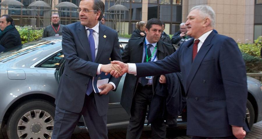 KATHIMERINIEU baton passed to Greece“It will be a presidency of hope with more and better Europe,” prime minister Antonis Samaras said referring to Greece’s EU presidency on his arrival in Brussels. Mr Samaras will today present Greece’s preparations for the presidency while a main item on the agenda of the summit will be European defense and security. During yesterday’s dinner the European leaders discussed economic and banking unification. |