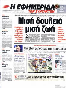 EFIMERIDA TON SINTAKTONMini-jobs, mini-livesThousands of workers live on less than 250 euros a month. No Christmas bonus for thousands in the private sector. 3-12 months’ salaries overdue for 800.000 people. |