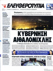 ELEFTHEROTYPIAGovernment of SmogWe’re suffocating but they restrict themselves to recommendations and cheap talk instead of reducing the special consumption tax on heating oil. The Government is sinking in Stournaras’s ‘swimming pools’. Raising the vague fear of black market profiteers, cabinet ministers are refusing to provide relief to millions of Greeks who are suffocating in the smog by reducing the special consumption tax on heating oil. Instead, they are restricting themselves to recommendations, cheap talk and regulations which are almost impossible to police. “Take this heating subsidy, we even offer it for swimming pools,” finance minister Yannis Stournaras suggests instead, provoking a strong reaction from the opposition but also 41 New Democracy MPs. Meanwhile professors from the University of Thessaloniki are calling for emergency measures to be taken as the pollution from wood-fires reaches dangerous high levels. The only hope is a change in the weather from today. |