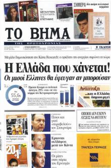TO VIMA (Sunday Edition)Greece is shrinking! Half the Greeks would leave if they could.