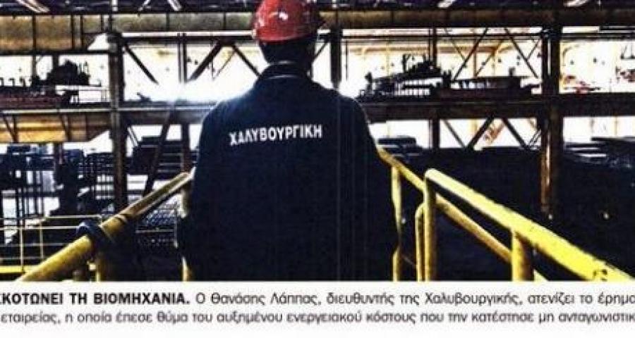 TA NEAElectric ‘shocks’ are killing industry (Pictured) Thanasis Lappas, Operations Director of the Halyvourgiki steel plant gazes over the deserted floor of the flagship company which has fallen victim to high energy costs which have rendered it uncompetitive. |