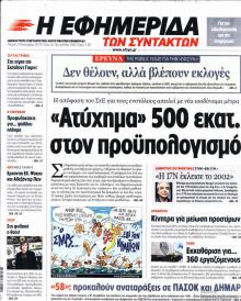 The Greek police are implementing security measures on par with those taken during the [2004] Olympic Games, reinforcing, under the fear of terrorist strikes, the protection of buildings, hotels and car convoys connected to Greece’s EU Presidency. Plans by Athens police headquarters include everything from patrols by armored police around the Zappeion Palace – where from today there is an irregular council of EU interior ministers – and the hotels occupied by European officials, to the stationing of secret police around the perimeter of the Acropolis. In addition security measures have been tightened around 320 protected targets throughout Attica. American and British security forces are participating in the efforts to prevent terrorist strikes and the manhunt by anti-terrorism police for [escaped terrorist] Xiros.