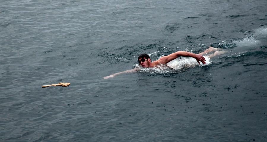 Ceremony for the blessing of the waters during the celebration of the Epiphany Day at Rafina, some 30 kms northeast of Athens on January 6, 2014. FOSPHOTOS - Menelaos Myrillas