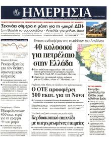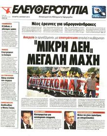 ELEFTHEROTYPIALittle DEI, large battle [DEI is short for the Public Power Corporation] Workers go on strike, the government threatens them with mobilisation The strike actions that are beginning at midnight are the ‘mother of all battles’ for the unionists of GENOP DEI (the General Federation of DEI employees) in light of the parliamentary discussion over the draft legislation for the ‘little DEI’, as they appear determined to pull the rope taut to breaking point and have stated that, “in any area that there is energy production, there will be a strike.” At the same time the government appears determined to counter the labour action and has let it be known that it will not hesitate to resort to conscription. On the front that has been created against the privatization of the largest state enterprise in the country, SYRIZA has leapt dynamically, stating that it will not recognize the privatization of DEI. Alexis Tsipras will be in Amyntaio today. |