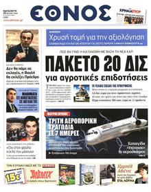 ETHNOSA €20 billion package for agricultural subsidies How the new CAP [Common Agricultural Policy] will be disbursed The new paper for agricultural subsidies worth €20 billion for the period 2015-2020 was presented yesterday to parliament by the Minister of Agricultural Development G. Karasmanis. New farmers in particular benefit from the new CAP. |