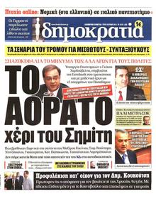 DIMOKRATIAThe invisible hand of Kostas Simitis Gkikas Hardouvelis is the new Finance Minister – a former consultant for Eurobank which went bankrupt, and with no record as a secret adviser to former PM Papademos. The government reshuffle is a brainteaser of a message for citizens. How Sofia Voultepsi, Dinopoulos, Giakoumatos, Katerina Papakosta, Tasoulas and Lampropoulos suddenly found themselves back in the prime ministerial mansion. A government reshuffle with lots of PASOK and New Democracy MPs (aside from Anna Karamanli) only from Athens. None of the losing New Democracy candidates for mayoral races was given a position in the government reshuffle. Venizelos ‘paid off’ dissenters with ministerial positions. |