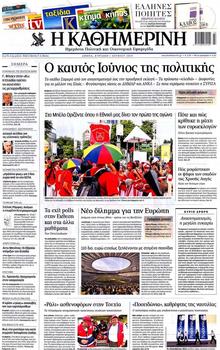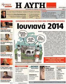 AVGI (Sunday)Iouniana 2014 [Explainer: The headline is drawing a parallel between the events of this June (Iouniana) with the ‘Iouliana’ (i.e July events) of 1965, which occurred following the resignation of the then prime minister George Papandreou due to a rift with the king over the appointment of a new defence minister. During a period of political instability, despite the intense opposition of their leader, MPs of Mr Papandreou’s party formed a new government and are now referred to as defectors (apostates).] There is an intense level of behind-the-scenes deal-making the purpose of which is to carve up or dissolve smaller parties and win over independent MPs in order to shore up the frail government majority in parliament. The goal of the operation ‘Iouniana 2014’ which is being promoted by the Samaras-Venizelos system is to find MPs ‘willing’ to support new, painful measures and, under the pretext of maintaining ‘stability’ to create an illegitimate majority to support the election of a new President of the Republic in order to avoid early elections. DIMAR and Independent Greeks are at the epicenter of the operation with the goal that they become satellites of the governing parties or get broken up. Samaras and Venizelos are promising ministries and attempting to absorb ‘neighbouring’ political groups in order to avoid the looming SYRIZA victory. The European elections however showed that the government lacks political legitimacy and that it is being abandoned by the dynamic social strata. On the other hand Alexis Tsipras, speaking to a conference of Federation of Enterprises proposed the establishment of a social accord for growth and restructuring of the country. |