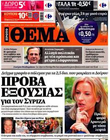 PROTO THEMA (Sunday)A rehearsal for power for SYRIZA It is the first time the Left has so much cash The battle over 2.5 billion euros to be disbursed by [newly elected regional governor] Rena Dourou is a key test Every move made by the new regional governor is being scrutinized by New Democracy and ‘comrades’. She has to deal with the 5 most influential dynasties in the country and the projects that are waiting. |