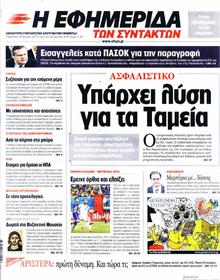 EFIMERIDA TON SYNTAKTONSocial Security: There is a solution for social security funds Without reductions in pensions and benefits, according to officials at social security organisations. Memorandum policies have deprived the social security system of over 33 billion euros. The government is preparing to cover the giant ‘black hole’ which it itself created with a new ‘haircut’ for pensions and benefits. Labour representatives propose specific measures and actions, distant from Memorandum practices. |