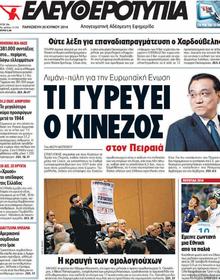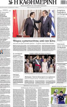 KATHIMERINIA vote of confidence from China A commitment to purchase Greek bonds – Agreements worth 6.5 billion euros The Chinese Premier Li Keqiang sent a strong message of confidence yesterday in the potential of the Greek economy over the long and short term during the first day of his official visit to Greece. During his meeting with the Prime Minister Antonis Samaras, his Chinese counterpart informed him that Beijing is ready to buy Greek debt in the next bond issuances from Athens. At the same time Li Keqiang reconfirmed Chinese interest in investments in infrastructure – the port of Piraeus, the Athens airport, railways – transport and energy. Bilateral and economic agreements were signed yesterday worth 6.5 billion dollars. Many of those are agreements to fund shipping companies for the construction of ships in Chinese shipyards. Others concern the promotion of Greek products in the Chinese market such as wine, olive oil and marble. Finally two agreements in the energy sector were signed as well as regarding the cooperation of the Fosun Group with Lamda Development over the exploitation of the site of the former airport in Hellinikon. |
