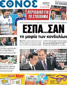 With only 10 men for the majority of the game Greece holds Japan to a draw to keep its hopes alive in the World Cup; the Chinese Premier confirms Chinese interest in investments in Greece; a racket over European structural funds is busted; there is a solution for troubled social security funds say labour reps; and Greece is hiding 30 billion euros of mineral wealth according to the Environment Minister. Image: Goal News.