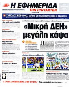 EFIMERIDA TON SYNTAKTON‘Little’ PPC is a big issue A call has been issued for citizens to gather tonight at 8 in the central square of Ptolemaida (a main electricity producing are of Greece with several coal-fired power plants) and at the gates of power stations in Eordaia, Amyntaio and Florina by the residents of the outlying towns who are resisting the plans of the coalition government to carve up of the Public Power Corporation and privatize its ‘choice cuts’. Alexis Tsipras will speak about the need to block the plans of New Democracy and PASOK at a central hotel to an audience of representatives of social, union and political groups. |