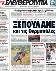 ELEFTHEROTYPIAThose who supposedly were tasked with protecting it, Are now SELLING OFF Thermopylae too Yet another location with great historical importance is coming to light thanks to the ‘for sale’ sign the Hellenic Asset Development Fund (HRADF) is hanging on it! So, the thermal springs of Thermopylae will pass to private hands together with 785,398 sq. meters of the surrounding area. The interested buyers are informed by the HRADF’s website – and not at all by chance – about the cultural significance of the area, with references to Hephaistos, Hercules and of course, the battle of Thermopylae and the legendary ‘no’ to the passage of the Persians said by the 300 of Leonidas and 700 Thespians. All this should be a joke, but it isn’t! Yet another serious incident to the clearance sale – with installments and at discount prices – of the country. |