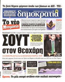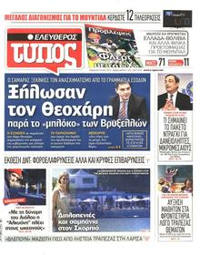 ELEFTHEROS TYPOSTheocharis ousted despite ‘blocking’ from Brussels Samaras begins the reshuffle from the revenue secretariat The ouster of Haris Theocharis heralds the government's decision for a change in tax policy. The behind the scenes dealings that led to the Prime Minister’s explosion and the heated exchanges in the ministry. Theocharis: “I didn’t take the measures, I am not a sacrificial victim.” |