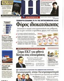 DIMOKRATIAThe new memorandum Talk of a potential elimination of the emergency tax proves to be pre election spin The emergency property tax (haratsi) remains in place based on ‘objective’ house prices that do not exist. But auctions and seizures are to be accelerated for debts to the state! |