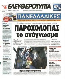 ELEFTHEROTYPIAThe fight for dignity “They can take our blood. Our livelihoods and our dignity we surrender to no one,” was the response of the cleaning staff who were yesterday brutally removed from the Finance Ministry by riot police. Four of the women were taken to the Evangelismos hospital for first aid. |
