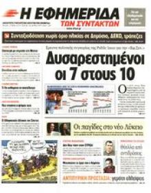 EFIMERIDA TON SYNTAKTON7 out of 10 unhappy A new Public Issue poll for Efimerida ton Syntakton Seven in ten citizens are unhappy with today’s situation while similar negatives sentiments were reported when they were asked about how they felt about their future prospects. Regarding their personal financial situation 73% answered that it had worsened in comparison to the recent past, while 47% expects that it will get worse. |