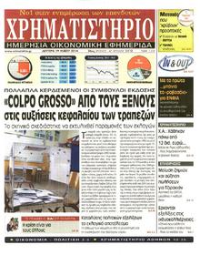 HRIMATISTIRIOA ‘Grand Con’ (Colpo Grosso) from foreign interests in capital share increases of the banks The plan was staged to unfold on the eve of the elections The game in the banks was clearly set up by foreign interests. With the banks in Greece informally going along with this game of profiteering – because they wanted to cover their capital needs. The smallholders were set up not to be destroyed but to follow their fate. The major foreign investment houses, in their efforts to perform a share capital increase of the Greek banks, supported the climate of euphoria with the aim, of course, of the rewards of 220-230 million euros which they received in the end without much effort. The foreigners weren’t guarantors or beneficiaries but simple consultants over the issuance and for their role received 220 with 230 million. However the true worth of their reward was much greater, if it is taken into account that they received shares in the banks on their books at prices lower than that offered in the share capital increase. |