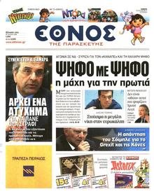 ETHNOS‘It would only take one accident for everything to go wrong.’ Interview with PM Antonis Samaras: What will happen with the 4-year term and early elections. A message for high voter turnout. |