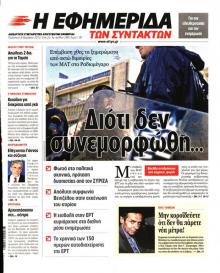 ΤΑ ΝΕΑSYRIZA’S censure motion: Gaffe or Bluff? SYRIZA: Confrontation now or never See also at yesterday’s press review, ETHNOS. Government: They’re handing us a carte blanche |