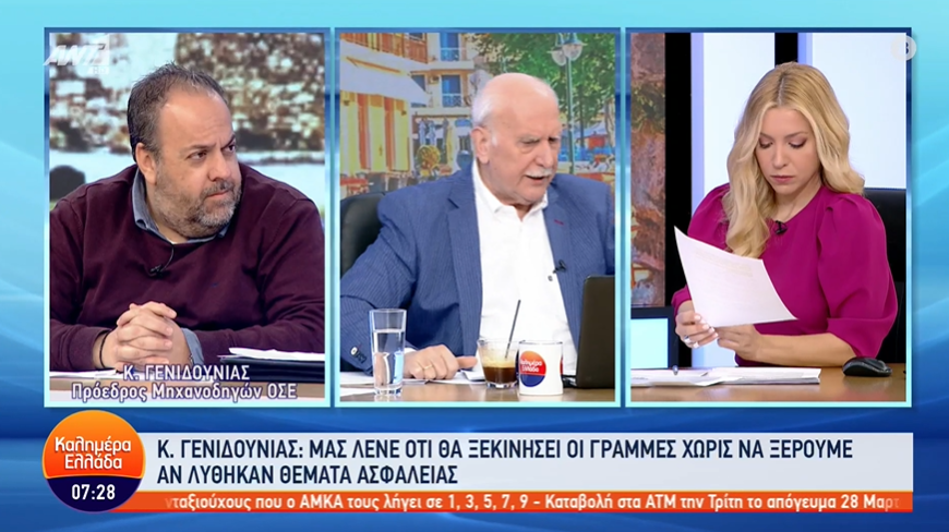 Μιλώντας σήμερα στην εκπομπή «Καλημέρα Ελλάδα», ο κ. Γενηδούνιας κατήγγειλε ότι από τη συνάντηση με τον κ. Γεραπετρίτη για την επόμενη μέρα στα τρένα, οι μηχανοδηγοί δεν είχαν κληθεί.