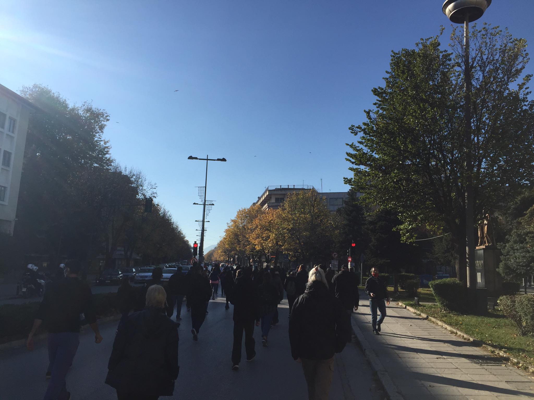 Παρά τις απαγορεύσεις, στις 10.30 συγκροτήθηκε πορεία στην Περιφέρεια Ηπείρου, με την συμμετοχή της Χειρονομίας – Αντιεξουσιαστικής Κίνησης, της ΕΣΕ, Σωματείων Βάσης, της ΑΝΤΑΡΣΥΑ και άλλων δυνάμεων της εξωκοινοβουλευτικής αριστεράς. Η πορεία, καθ’ όλα ειρηνική και με αποστάσεις, κινήθηκε προς την Ακαδημία όπου και μπλοκαρίστηκε από μονάδες της ομάδας ΔΙΑΣ. Ακολούθησαν δύο επιτόπου προσαγωγές με τραυματισμούς, ενώ στο ανθρωποκυνηγητό που εξαπολύθηκε έγιναν ακόμη οκτώ προσαγωγές.