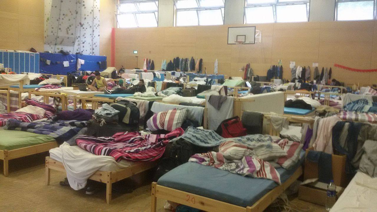Όταν φτάνω στον χώρο, οι πρόσφυγες έχουν βγει στον δρόμο κρατώντας αυτοσχέδια πανό από χαρτόκουτα και φωνάζοντας συνθήματαστα γερμανικά. «Χρειαζόμαστε μια καλύτερη ζωή» λένε εν χορώ. «Απεργία» γράφει το ένα πανό, «Ζούμε στο γήπεδο έναν χρόνο, ζητάμε ένα ξενοδοχείο ή ένα καλό σπίτι» το άλλο. Όταν τους ρωτάω αν μπορώ να πάρω φωτογραφίες και αν θέλουν να μιλήσουμε για να κάνω ρεπορτάζ, παρατηρώ έναν διάχυτο ενθουσιασμό στα πρόσωπά τους. Δέχονται, λοιπόν, με προθυμία. Όπως συμβαίνει και στην Ελλάδα όμως, οι δημοσιογράφοι δεν επιτρέπεται να μπουν στον χώρο του καταφυγίου, αλλά και οι ίδιοι οι πρόσφυγες προτιμούν να μην καταγράψει ο επιστάτης του χώρου την επικοινωνία μας, καθώς ήδη φαινόταν κάπως ενοχλημένος με την κίνηση διαμαρτυρίας. Έτσι, καθόμαστε στην πίσω πλευρά του γηπέδου για να συζητήσουμε τα αιτήματά τους.