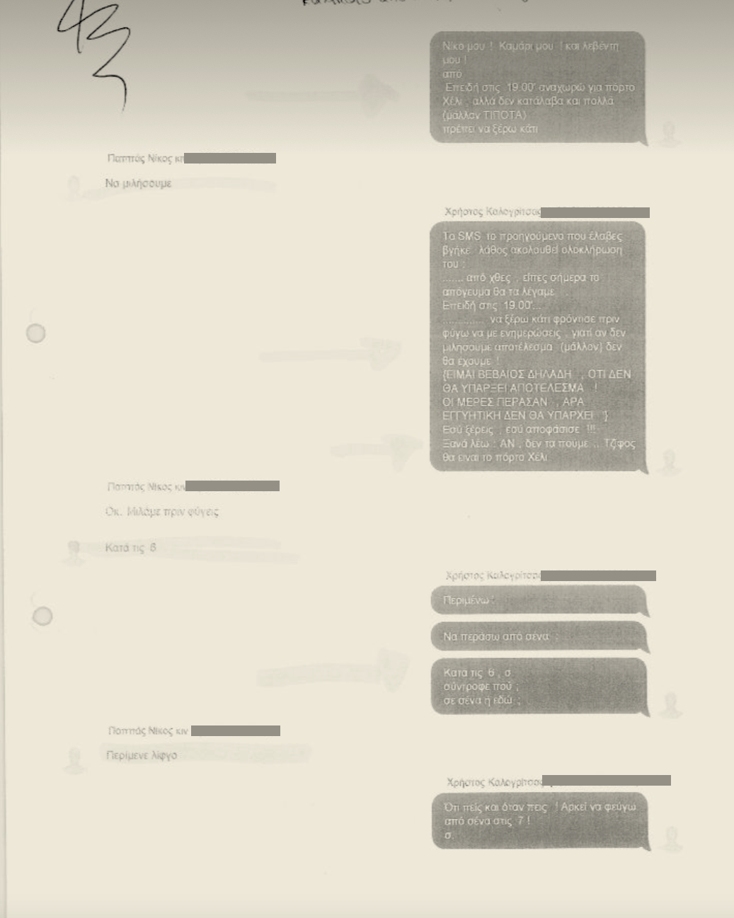 Σημειώνεται ακόμα πως κατά τη σημερινή ημέρα, ο επιχειρηματίας φέρεται να κατέθεσε στην επιτροπή μία σειρά γραπτών μηνυμάτων του με τον Ν. Παππά, πριν από την φερόμενη συνάντηση στο Πόρτο Χέλι με την οικογένεια Χούρι, αντίτυπο της οποίας διέρρευσε σε συστημικά μέσα ενημέρωσης. Με κάθε επιφύλαξη, οι φερόμενοι διάλογοι που δόθηκαν στη δημοσιότητα, όπως δημοσιεύτηκαν από το real.gr: