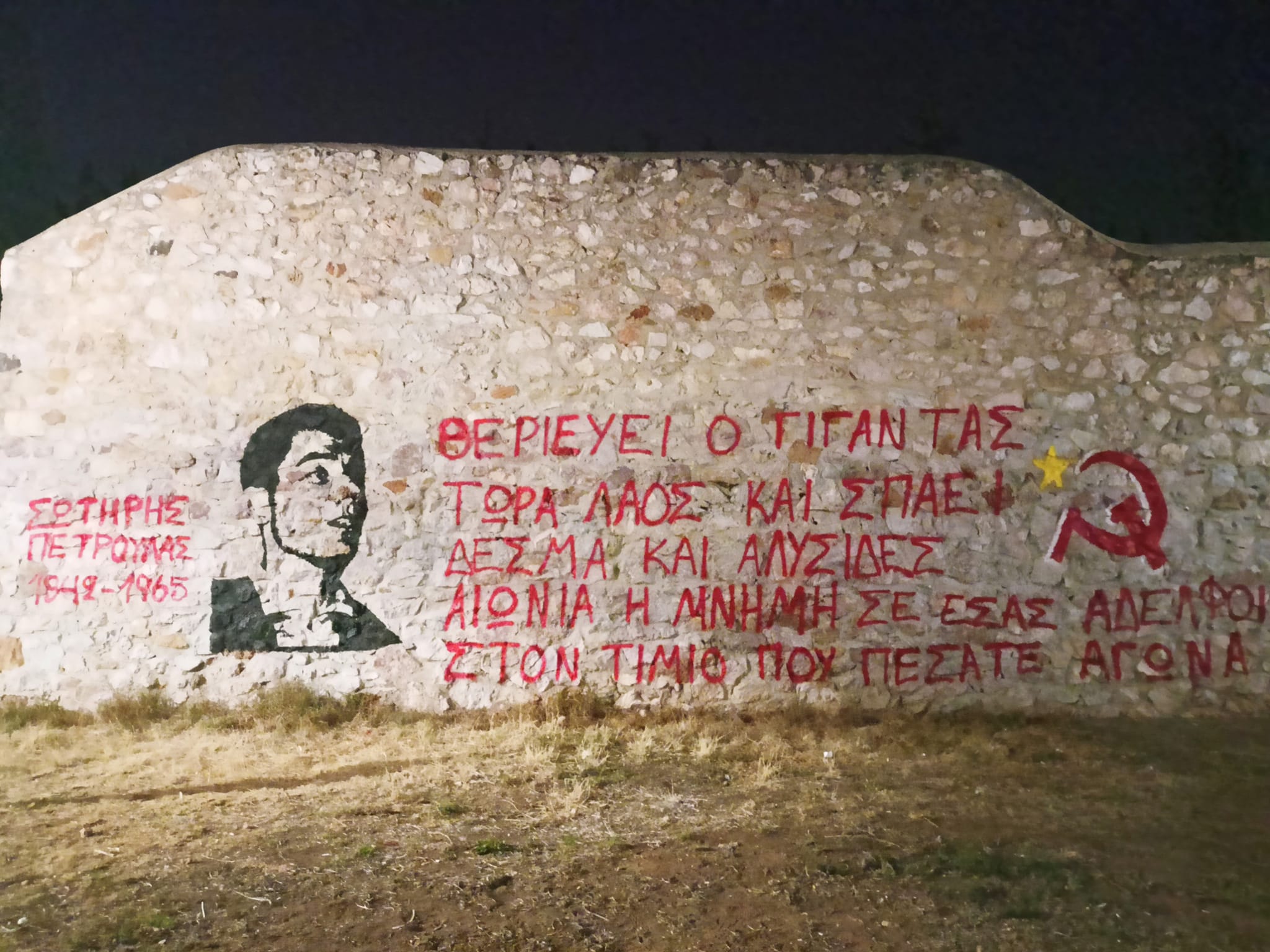 «Προσωπογραφία τιμής, μνήμης και αγώνα για τα 58 χρόνια από την κρατική – παρακρατική δολοφονία του Κομμουνιστή – Αγωνιστή Σωτήρη Πέτρουλα στο Σκοπευτήριο Καισαριανής Χθες το βράδυ, μία μέρα πριν την επέτειο των 58 χρόνων από την κρατική και παρακρατική δολοφονία του κομμουνιστή-αγωνιστή Σωτήρη Πέτρουλα, πραγματοποιήσαμε την προσωπογραφία του στο Σκοπευτήριο της Καισαριανής.