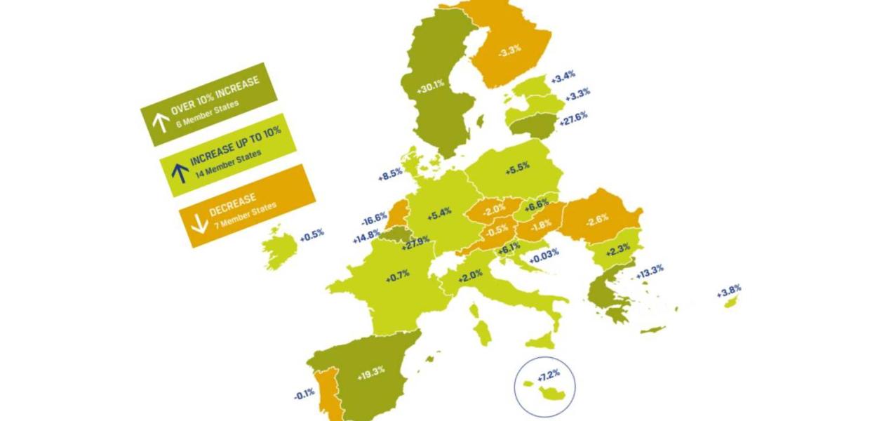 🔼10%+ increase by 6 🇸🇪🇱🇺🇱🇹🇪🇸🇧🇪🇬🇷