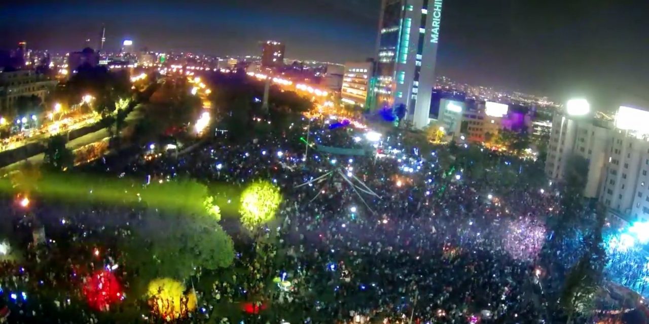 Οι διαδηλωτές, με σημαίες, της Χιλής, της Βολιβίας και της Παλαιστίνης, πανώ με συνθήματα για τον αγώνα, και τις γνωστές κατσαρόλες να δίνουν τον τόνο μαζί με τους μουσικούς που βρέθηκαν εκεί, παρέμειναν όλο το βράδυ στην πλατεία, σε μια γιορτή που πήρε το όνομα «Νέο έτος με Αξιοπρέπεια» και δείπνησαν όλοι μαζί, μετατρέποντας σε ένα τεράστιο γιορταστικό τραπέζι την πλατεία.