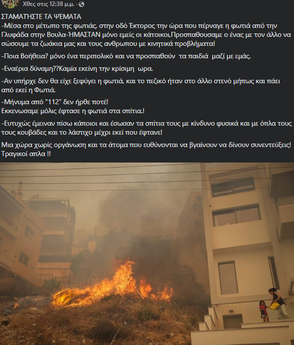 Κάτοικος της περιοχής που είδε τις φλόγες να πλησιάζουν τη ζωή της προχώρησε σε μία επεξηγηματική ανάρτηση της κατάστασης.