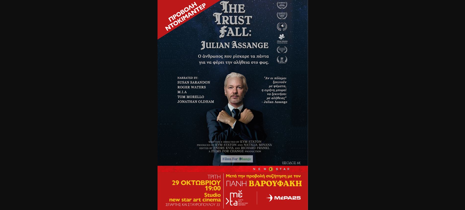 Το «THE TRUST FALL: JULIAN ASSANGE» εξετάζει το νόημα και τη σημασία των γνώσεων που μοιράστηκε το WikiLeaks με τον κόσμο, τη συμπεριφορά των εμπλεκόμενων κυβερνήσεων, τον εξαιρετικό προσωπικό κίνδυνο που ανέλαβε ο Assange και τα ευρύτερα θεμελιώδη ζητήματα σχετικά με την ελευθερία του Τύπου που επηρεάζουν όλους από εμάς και το δικαίωμά μας να γνωρίζουμε.