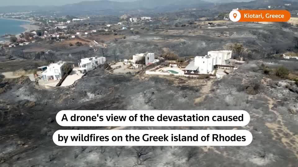 A drone’s view of the devastation caused by wildfires on the Greek island of Rhodes pic.twitter.com/IfF6XC7SmV